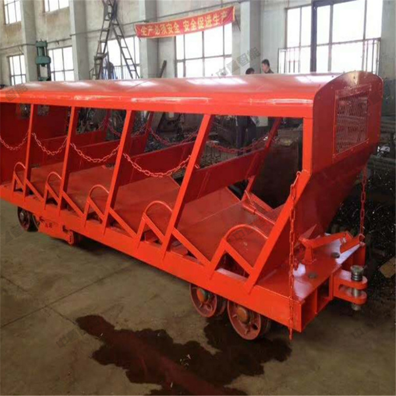 斜井人车是矿山斜井运送人员的重要安全设备。整个列车是由一头车(S1)、二头车(S2)、以及一定节数的挂车(G)和尾车(W)组 成、每节人车乘坐人员均为15人。根据斜井倾角和提升能力大小的不同,列车的组列节数一般是由3—5节组成,乘坐人员45—75人。XRB15型抱轨式斜井人车适用于600mm轨距,18kg/m、22kg/m、24kg/m的钢轨,木枕、水泥枕及水泥整体道床,倾角10°—40°。无煤尘和瓦斯爆炸危险的斜井。
